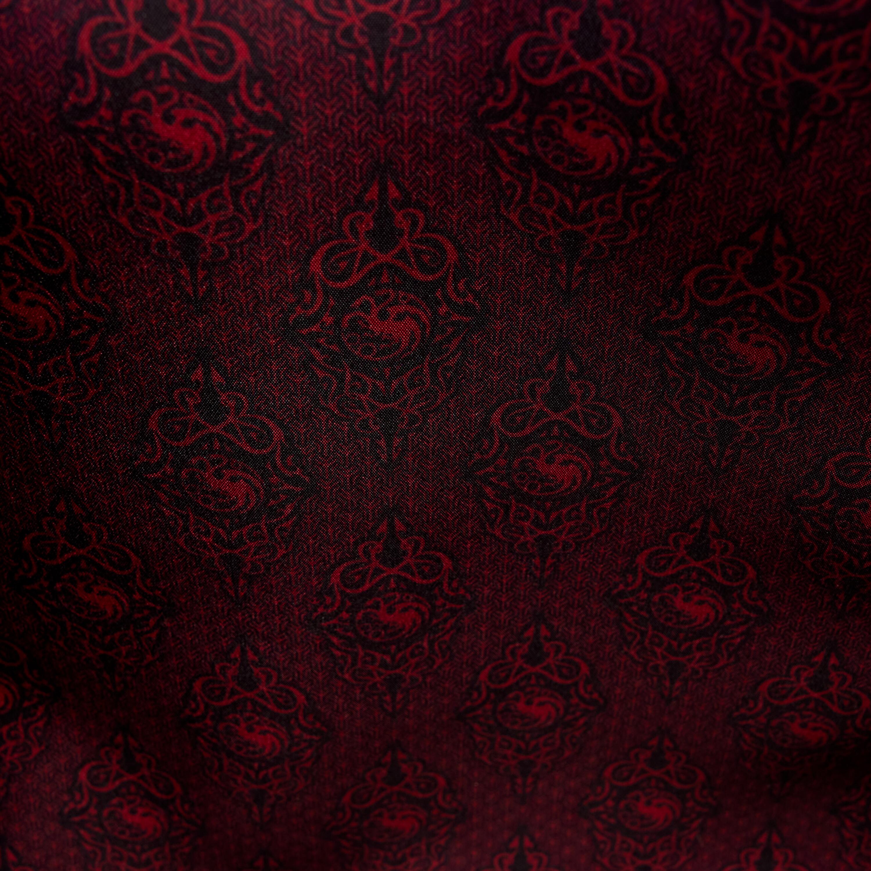 Ce sac est idéal pour transporter tous vos essentiels et organiser votre journée. Vous y retrouverez des détails familiers, comme des breloques en forme de dragon en métal, semblables à celles que porte Rhaenyra Targaryen dans la série. Une breloque en forme d'œuf de dragon est également attachée au sac. Des détails en relief, vieillis et en velours harmonisent l'ensemble.