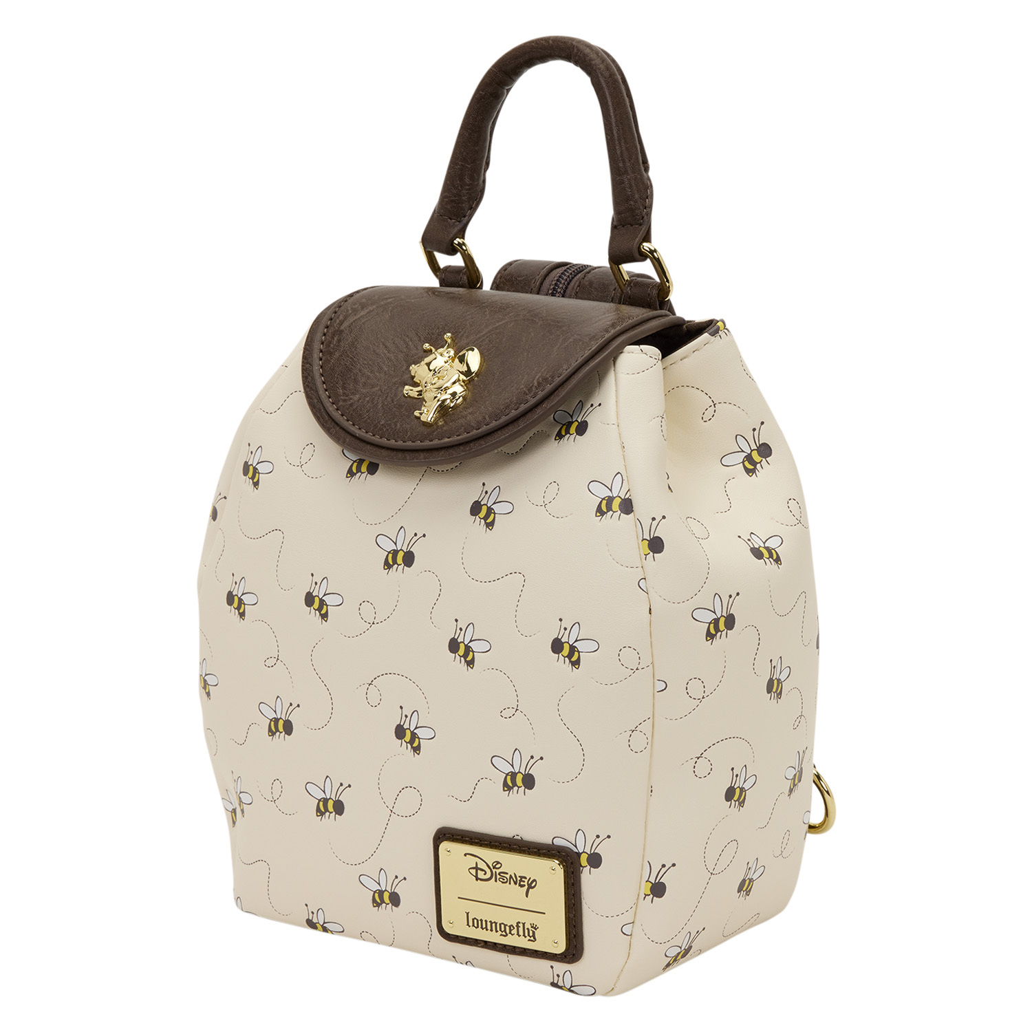 Ce mini sac à dos est plus petit que notre mini sac à dos classique. Il est orné d'un motif en relief d'abeilles butinant. Le rabat supérieur est agrémenté d'une breloque en métal moulé en 3D représentant Winnie l'Ourson! Le sac se transforme en bandoulière en assemblant les deux parties de la bandoulière grâce à une fermeture éclair. Préparez-vous à vivre de douces aventures avec ce sac !