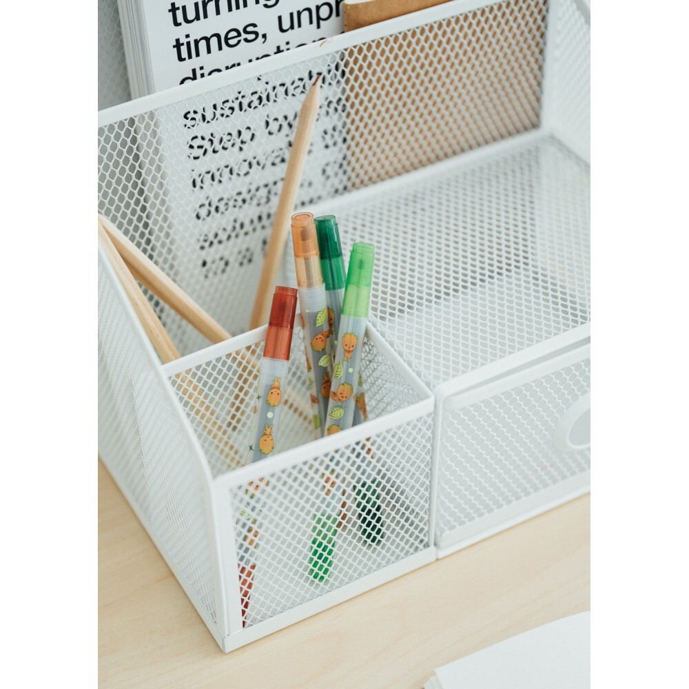 Il contient 4 surligneurs avec deux pointes de tailles différentes. Il comprend un étui en PVC.