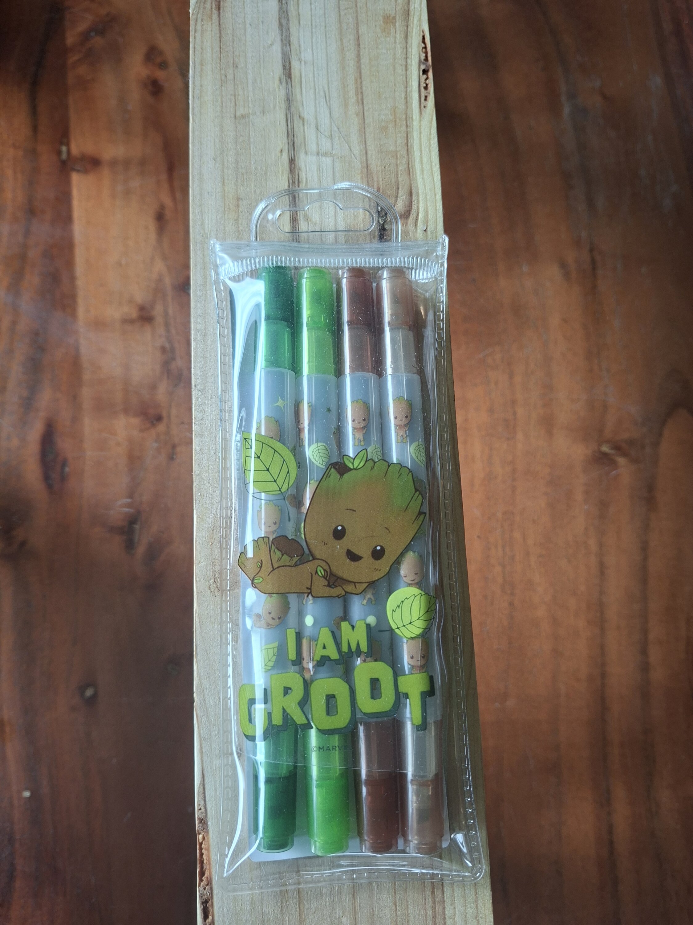 Des surligneurs style « Groot » avec un petit défaut au niveau de l'emballage