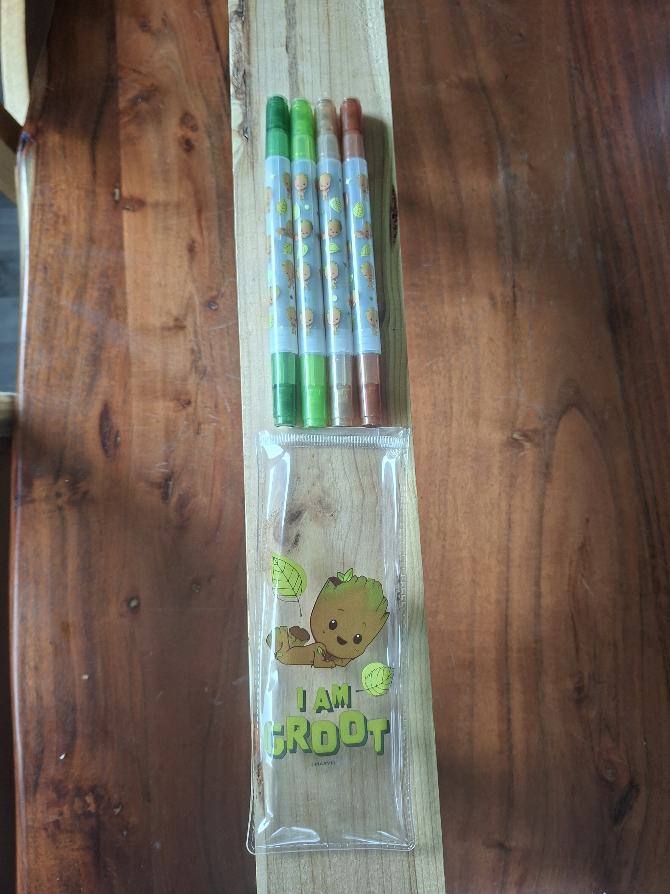 Les quatre surligneurs aux magnifiques tons naturels (vert et marron) sont superbes avec leurs motifs Baby Groot. Ils éclairent avec précision et attirent tous les regards sur un bureau. Malheureusement, l'étui est fragile. Il faut découper le couvercle en plastique sur le dessus pour accéder aux surligneurs, et ensuite, impossible de le refermer.