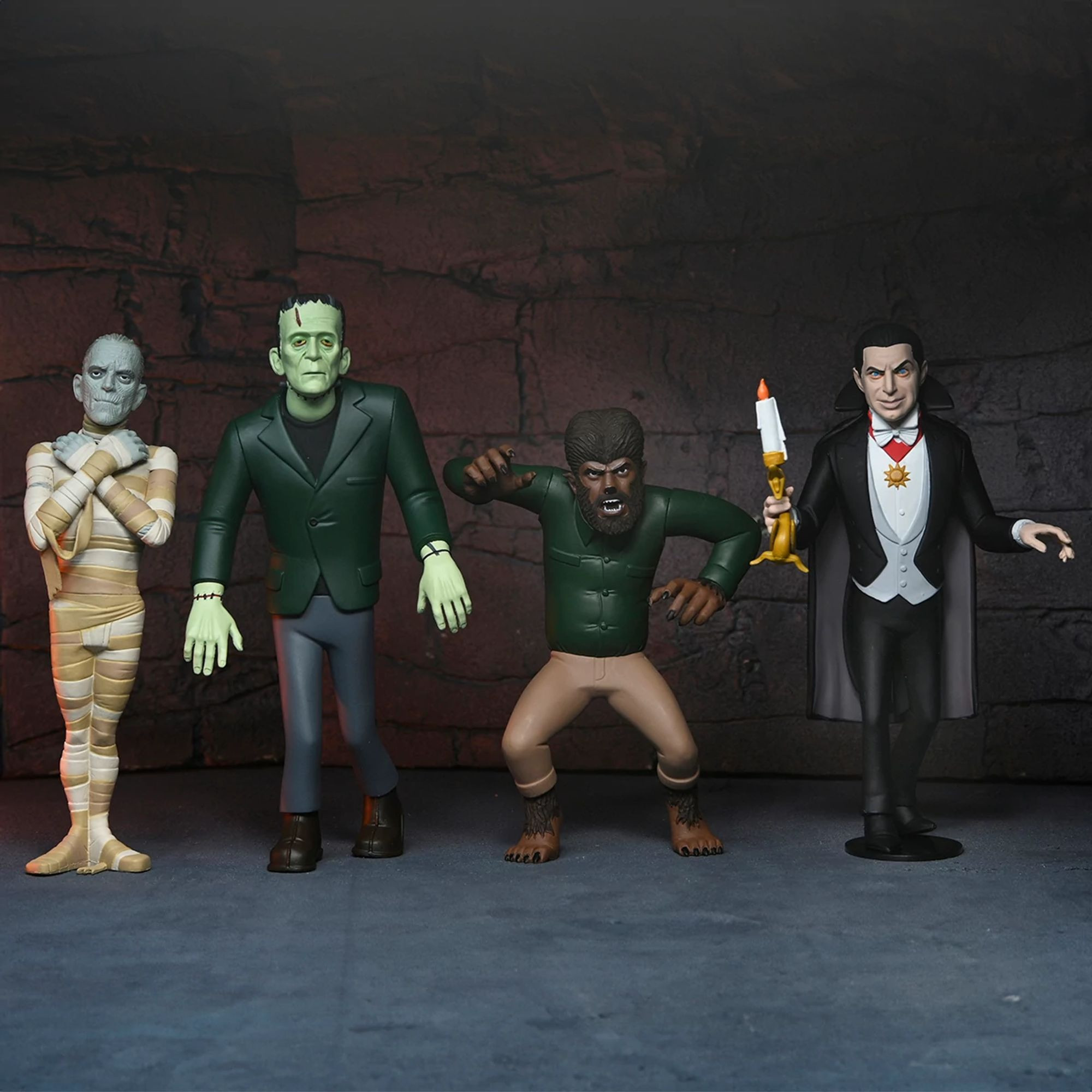 Plongez dans notre collection d'horreur avec ces adorables petits monstres ! Les fans des célèbres monstres vont adorer cette série de figurines qui inclut l'Homme-Loup, la Momie, Dracula et le Monstre de Frankenstein ! Chaque figurine, mesurant environ 15 cm de haut, est présentée dans un nouvel emballage avec un décor découpé en bonus.