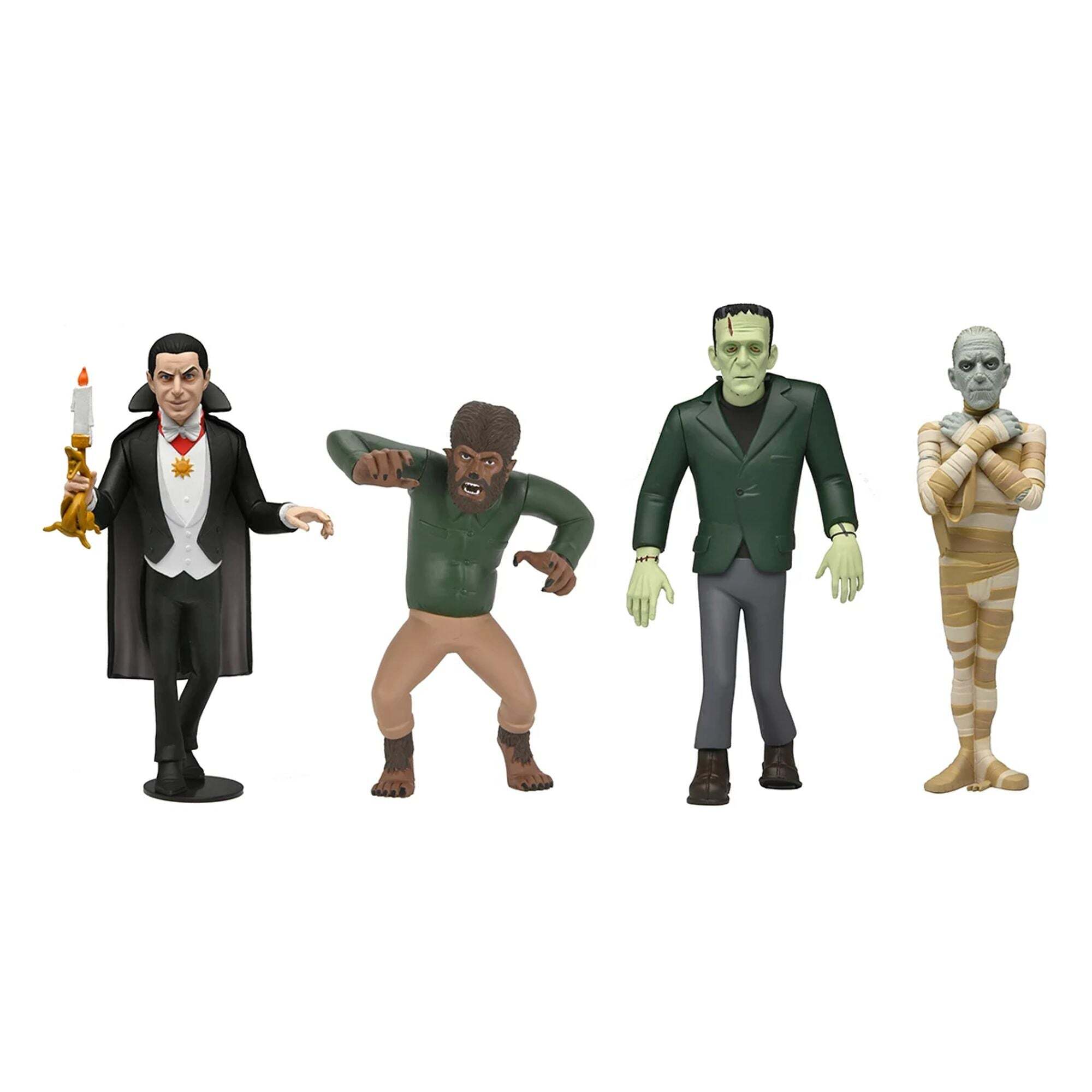 Plongez dans notre collection d'horreur avec ces adorables petits monstres ! Les fans des célèbres monstres vont adorer cette série de figurines qui inclut l'Homme-Loup, la Momie, Dracula et le Monstre de Frankenstein ! Chaque figurine, mesurant environ 15 cm de haut, est présentée dans un nouvel emballage avec un décor découpé en bonus. Height : 15cm
