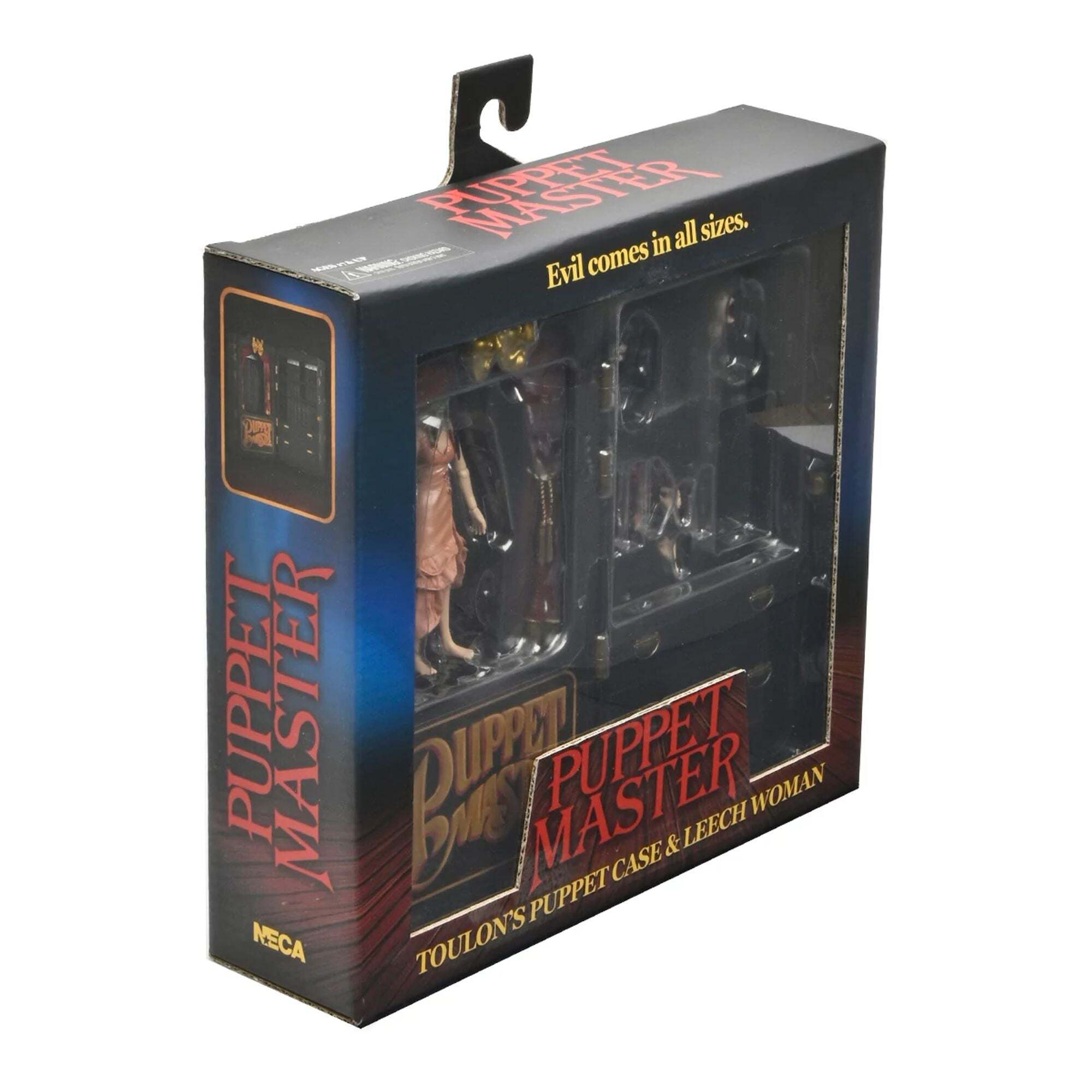 NECA est fier de présenter le pack Toulon's Puppet Case & Leech Woman des films d'horreur cultes Puppet Master ! La boîte est adaptée aux dimensions des autres figurines Puppet Master de NECA (vendues séparément) et peut contenir plusieurs figurines, ce qui en fait un ajout indispensable à votre collection Puppet Master ! Height : 18cm