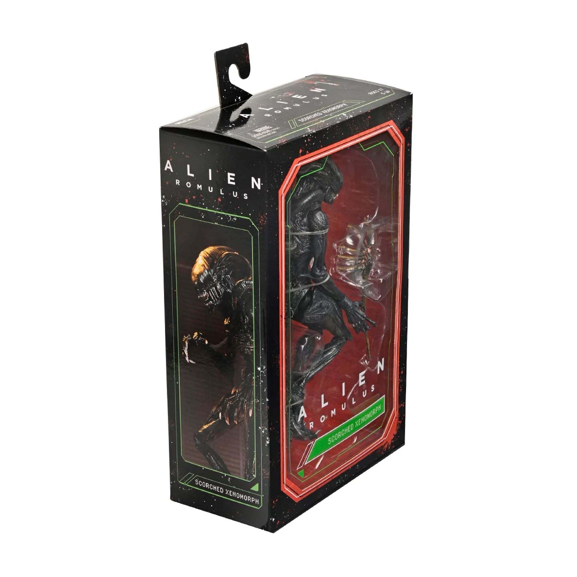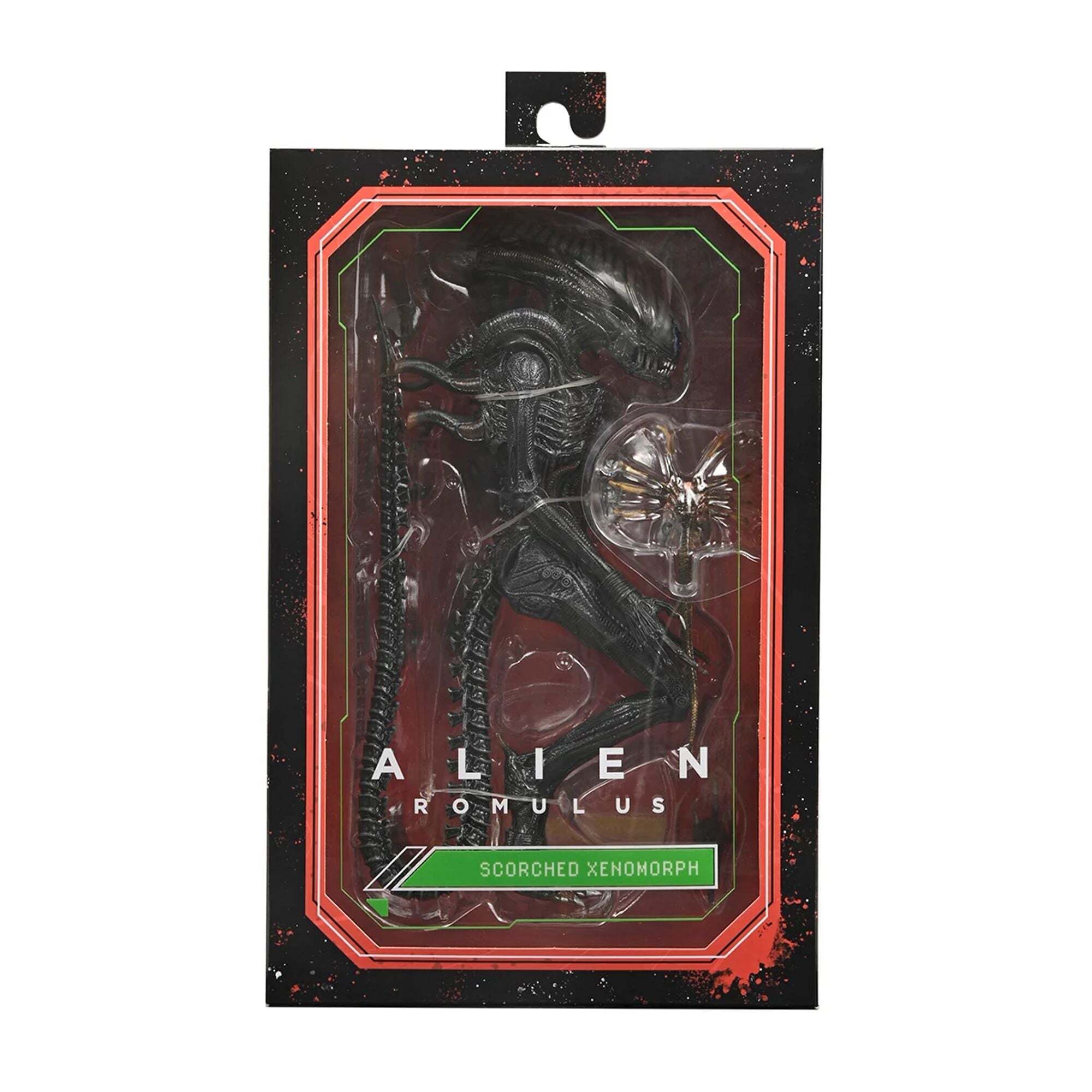 La version ultime de l'action figurine NECA du Scorched Xenomorph mesure plus de 18 cm de haut, avec 23 points d'articulation et comporte une mâchoire qui s'ouvre avec une bouche intérieure qui s'étend et une queue articulée.