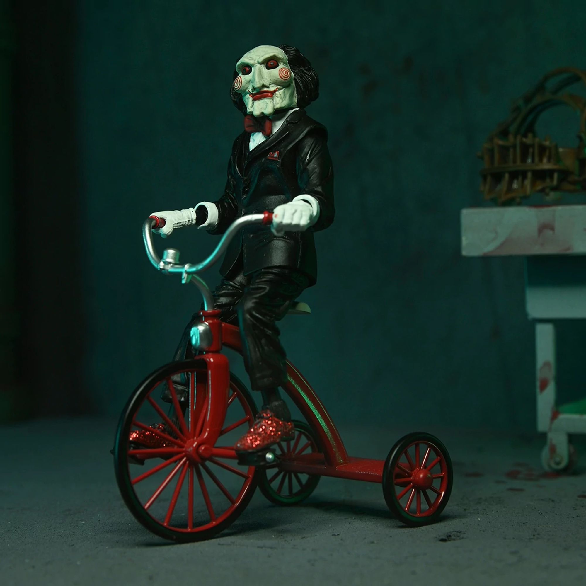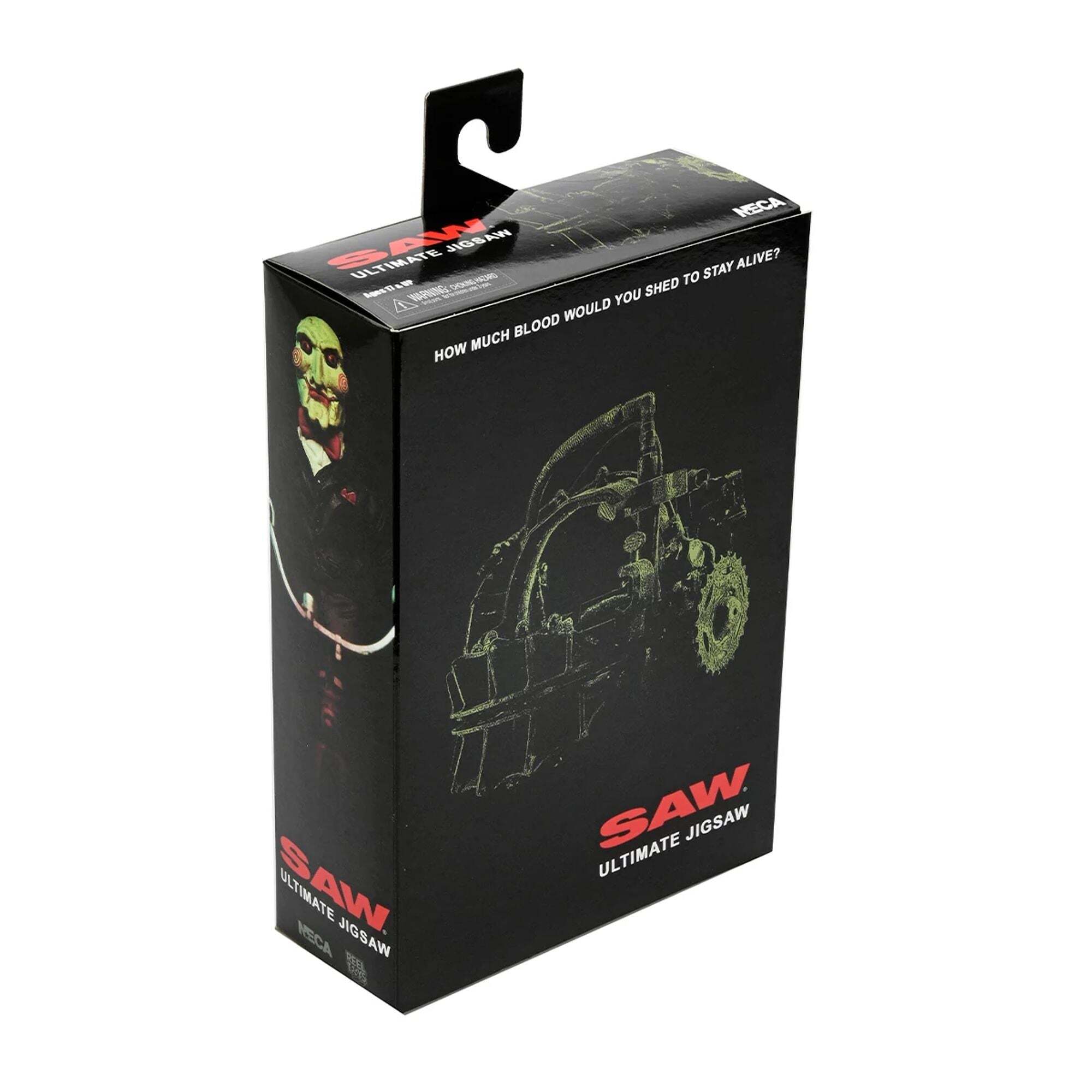 Plongez dans l’univers tordu de Saw avec cette figurine Ultimate de Jigsaw ! Le tueur mythique, qui pousse ses victimes à confronter leurs choix de vie dans des épreuves terrifiantes, prend forme ici avec une robe noire entièrement articulée et un corps sous tissu câblé. Accompagnée d'accessoires incontournables : des têtes et mains interchangeables, une tête masquée de cochon, un piège à tête de puzzle, un enregistreur, une lame extensible et la marionnette Billy sur son tricycle. Cette figurine est livrée dans un packaging boîte fenêtre avec un rabat, parfait pour les collectionneurs. Height : 17.5cm
