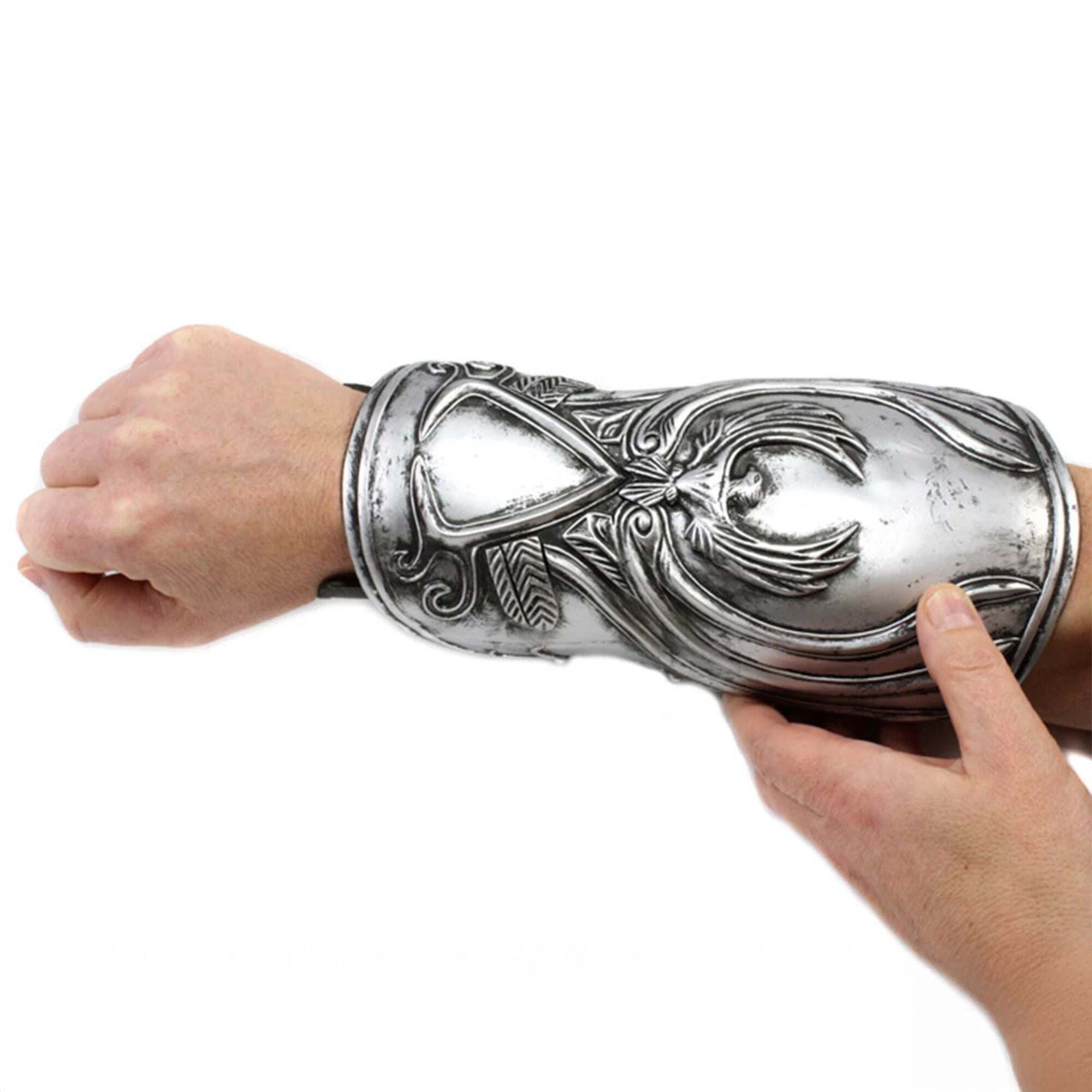 This Assassin’s Creed Gauntlet Replica is about as realistic as it gets. Part of Ezio Auditore’s garments, it perfectly recreates the gauntlet in the Assassin’s Creed series. Aside from the beauty of the armband itself, it features spring-loaded action and a rubber-like blade. Ezio’s Gauntlet comes in two separate parts: the Outer Vam Brace and the Inner Wrist Guard (where the spring-loaded action resides). It comes in “one-size-fits-most,” with adjustable straps to fit almost any forearm: Inner Wrist Guard – Wrist measures to 4.5 inches, Forearm measures to 5 inches Outer Vam Brace – 10 3/4 inches Height : 18cm