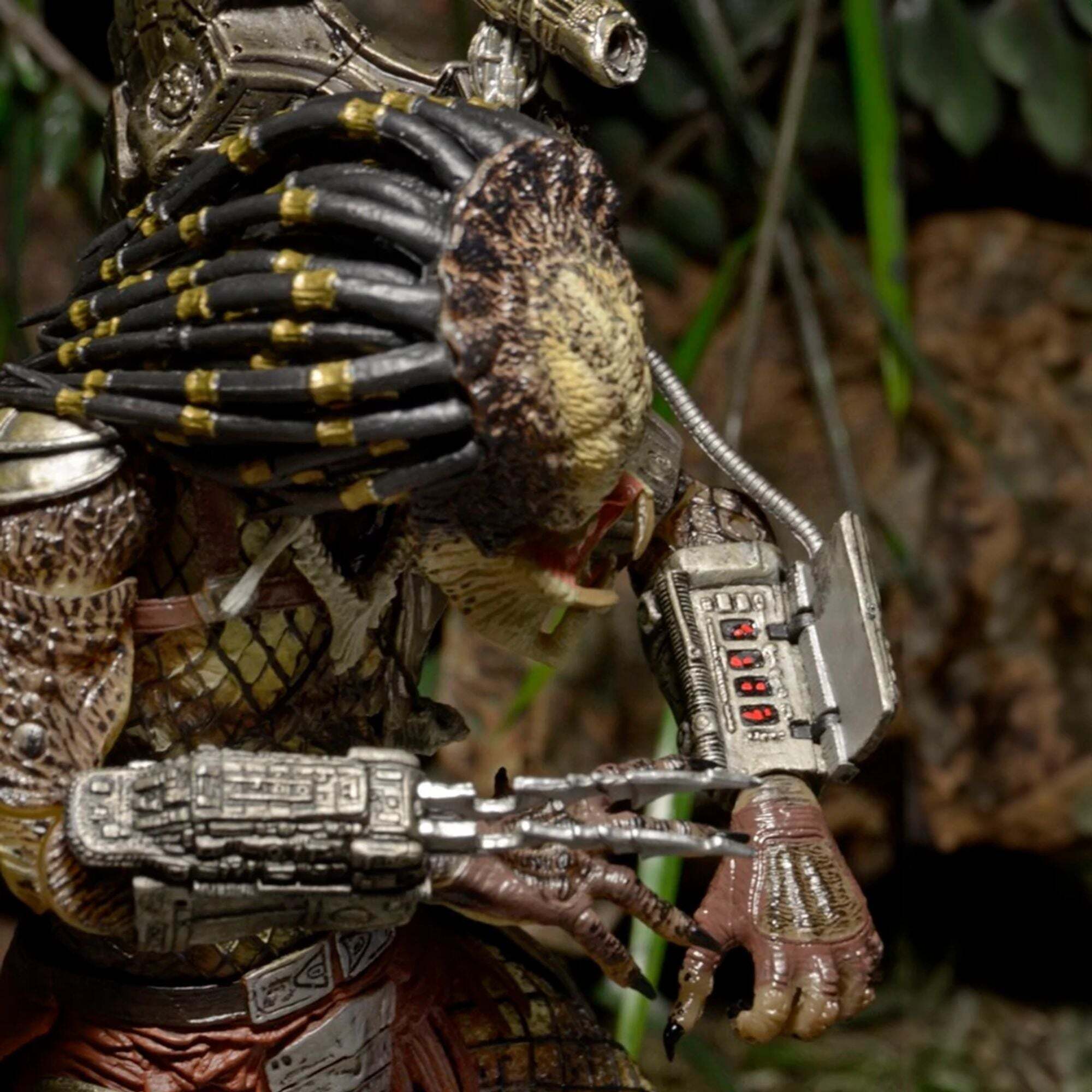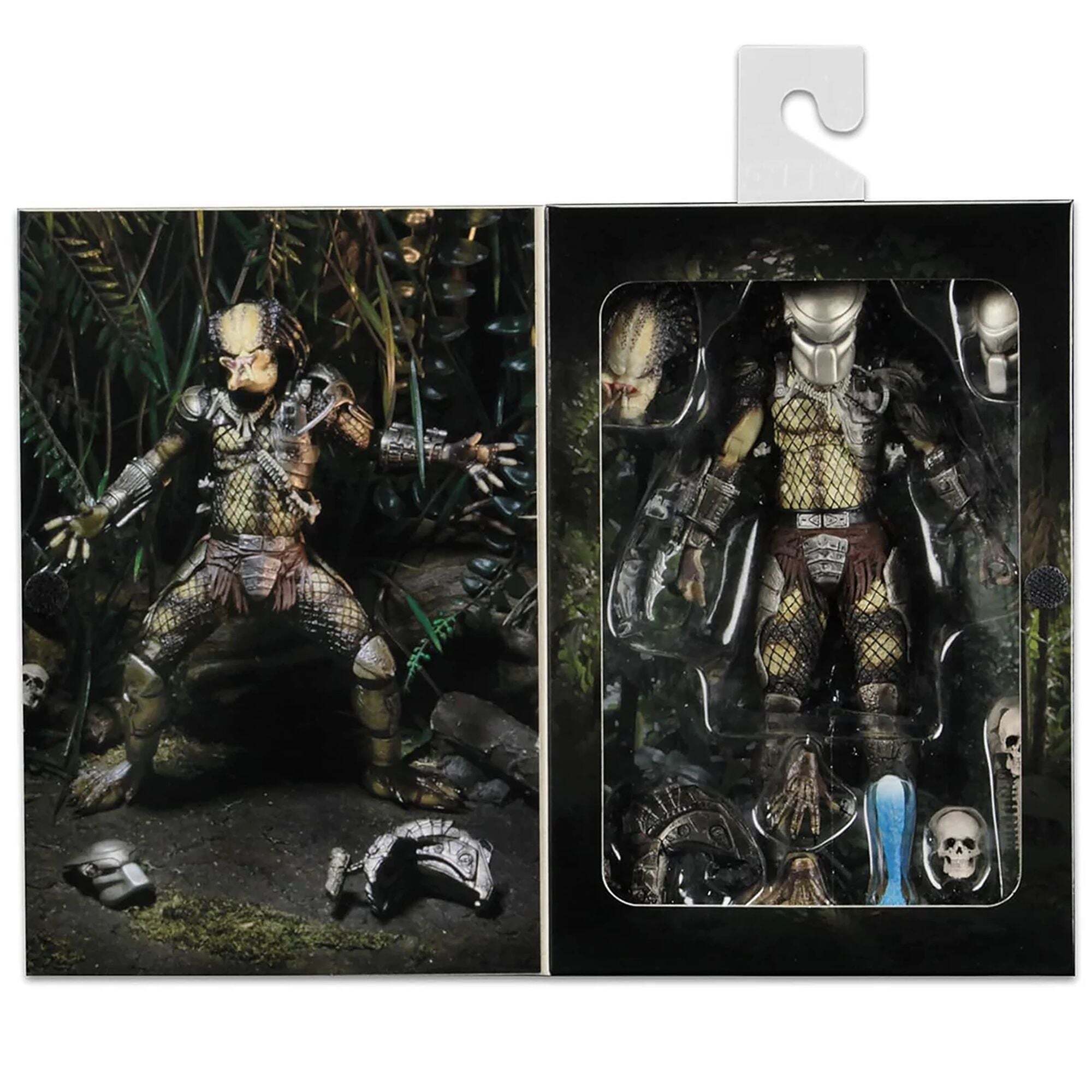 Enfin, les Predator classiques sont de retour, avec des améliorations le maire ! Inspiré du film Predator original, nous vous présentons l'édition collector ultime du Jungle Hunter. Ce chasseur a reçu le traitement « Ultimate », avec notamment des articulations supplémentaires au niveau des biceps (rotules), des coudes (doubles articulations) et du torse, ainsi qu'un bracelet qui s'ouvre ! Il est livré avec des têtes et des mains interchangeables, ainsi qu'une colonne vertébrale, un masque, un effet de canon et un crâne humain. Présenté dans une vitrine, idéal pour les collectionneurs. Hauteur: 18cm