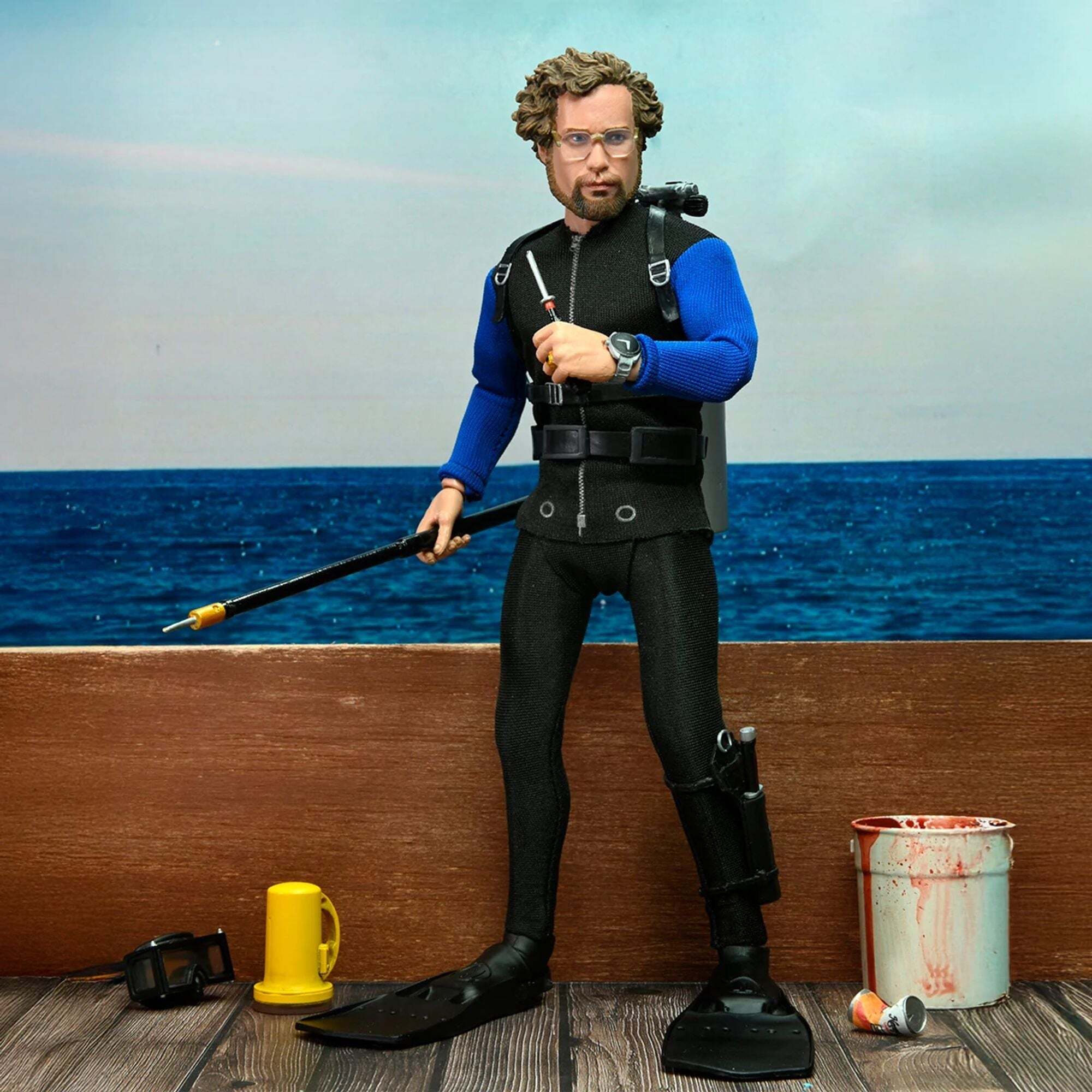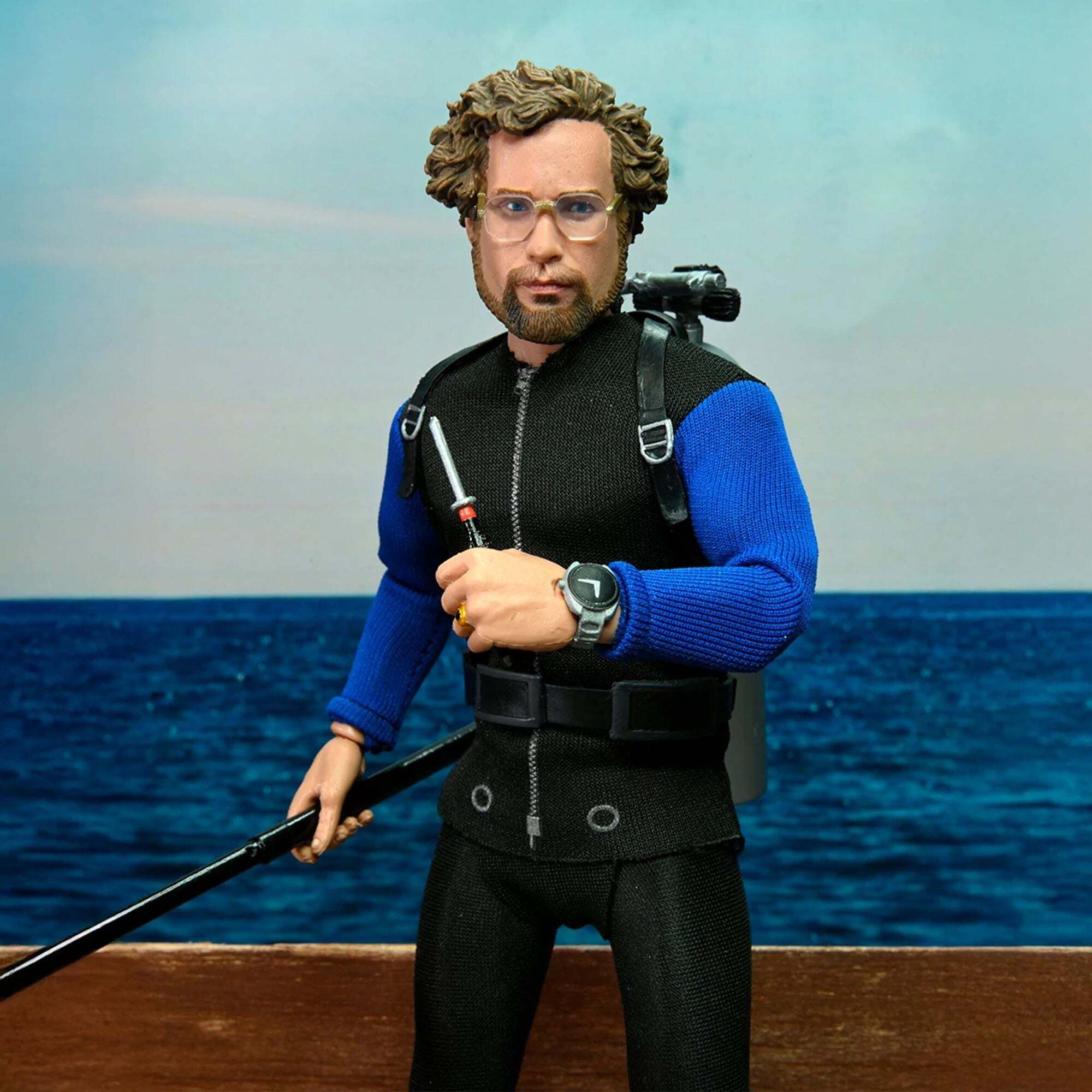 Les Dents de la mer est considéré comme l'un des plus grands chefs-d'œuvre du cinéma, marquant la naissance du blockbuster estival. NECA est fier de présenter une nouvelle figurine articulée de 20 cm, habillée de véritables vêtements en tissu, représentant Matt Hooper, incarné par Richard Dreyfuss dans le classique de 1975. Inspirée des scènes de la cage aux requins, cette figurine du jeune océanographe est livrée avec des accessoires fidèles au film : palmes, harpon, éclairage sous-marin, couteau et bouteille d'oxygène, ainsi que plusieurs têtes interchangeables. Présentée dans une vitrine collector. Hauteur: 20 centimètres.