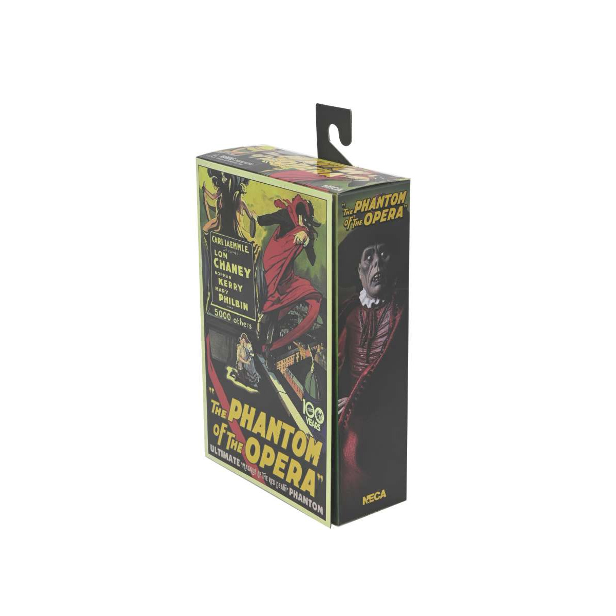 Célébrez un siècle de cinéma d’horreur ! À l’occasion du 100e anniversaire du film muet Le Fantôme de l’Opéra (1925), NECA rend hommage à ce classique avec une figurine spectaculaire à l’échelle 18 cm. Elle représente le Fantôme (Erik) dans son célèbre déguisement de la "Mort Rouge" lors du bal masqué, incarné avec une élégance macabre par Lon Chaney. Derrière son masque en forme de crâne, il épie Christine et Raoul depuis le toit de l’Opéra de Paris. Cette pièce de collection comprend : – Une cape en tissu – Un chapeau à large bord – Un bâton orné d’un crâne – Plusieurs têtes et mains interchangeables, compatibles avec les autres figurines NECA du Fantôme de l’Opéra (vendues séparément) Présentée dans une boîte de collection, cette figurine est incontournable pour les passionnés de films d’horreur et de cinéma classique. Mesure : 18cm