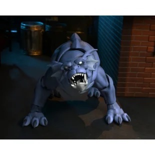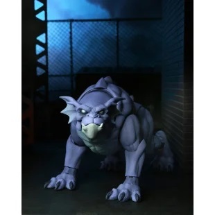 « Il y a mille ans, la superstition et l’épée régnaient... » Le temps des Gargouilles est revenu ! Véritable série culte des années 1990, Gargoyles raconte l’histoire d’un ancien clan de gargouilles transporté dans le Manhattan moderne après le déplacement de leur château écossais. Fidèle compagnon à quatre pattes de Goliath, Bronx n’a peut-être pas d’ailes, mais il reste un membre à part entière du clan et un redoutable combattant ! Cette figurine Ultimate entièrement articulée mesure environ 13 cm et comprend plusieurs accessoires : deux têtes interchangeables, un morceau de viande, ainsi qu’une paire d’ailes repliées compatible avec la figurine de Goliath (vendue séparément). Présentée dans une boîte vitrine collector avec rabat illustré. Height : 18cm