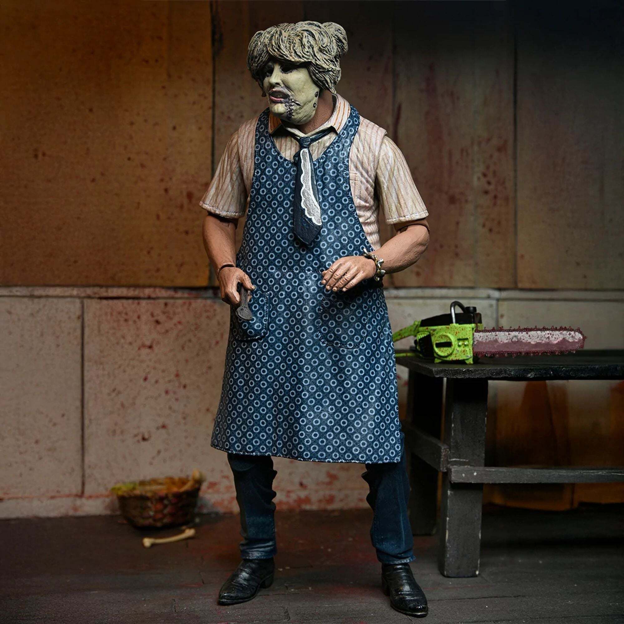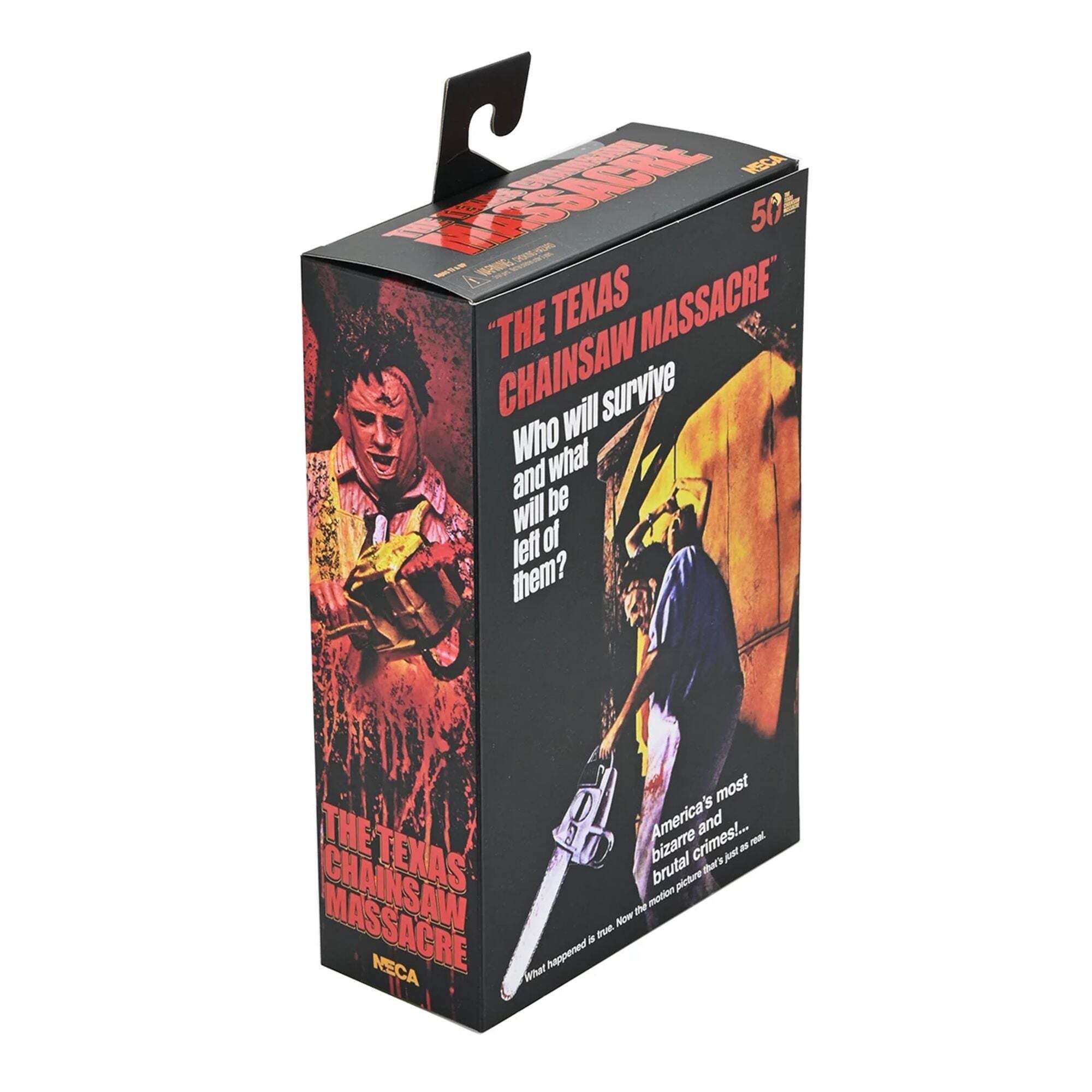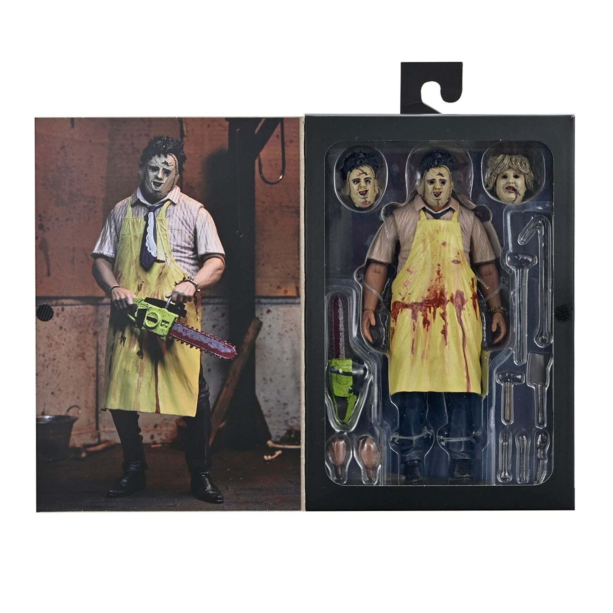 ""Pour les 50 ans de Massacre à la Tronçonneuse, NECA remet Leatherface à l’honneur avec une toute nouvelle version Ultimate, entièrement retravaillée ! Le film culte de 1974 signé Tobe Hooper a bouleversé le cinéma d’horreur, et voici l’occasion parfaite d’en avoir un morceau dans votre collection. Cette figurine ultra-articulée de 18 cm propose deux styles grâce à ses tabliers interchangeables, ainsi que trois têtes et plusieurs mains alternatives. Côté accessoires, elle est équipée de tout l’arsenal iconique du boucher texan : tronçonneuse ensanglantée, marteaux, pince, couteau, couperet, crochet de boucher, cuillère et même un bracelet. Le tout est présenté dans un emballage collector avec ouverture frontale. Un indispensable pour les fans de Leatherface… À ajouter à votre collection sans tarder !"