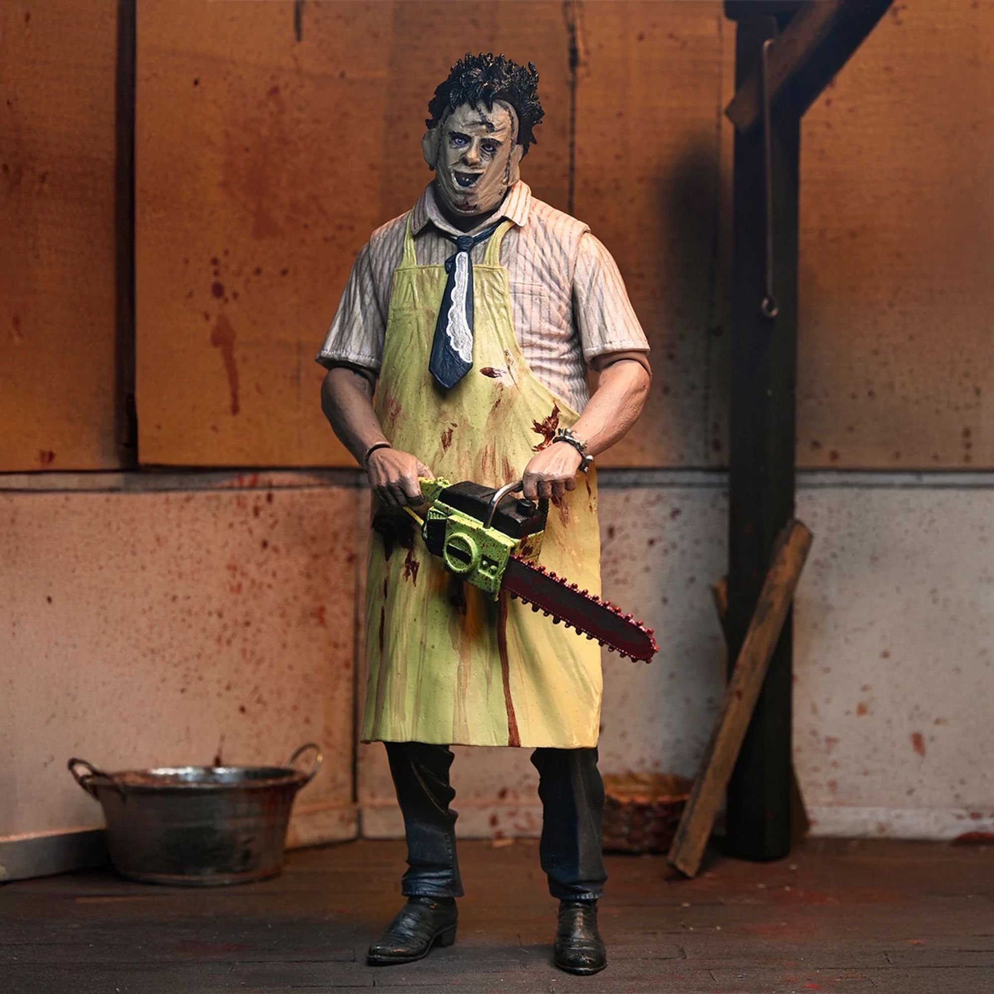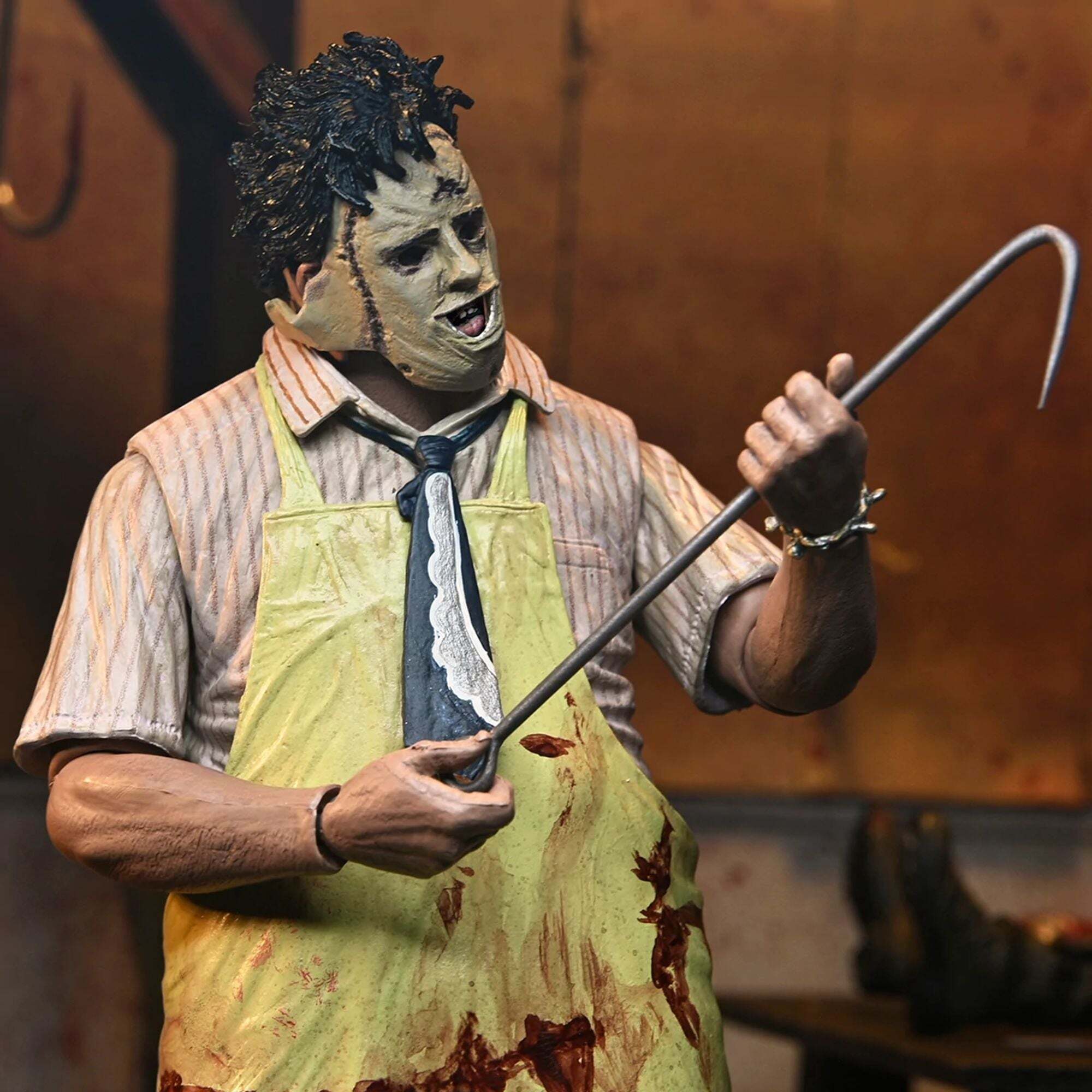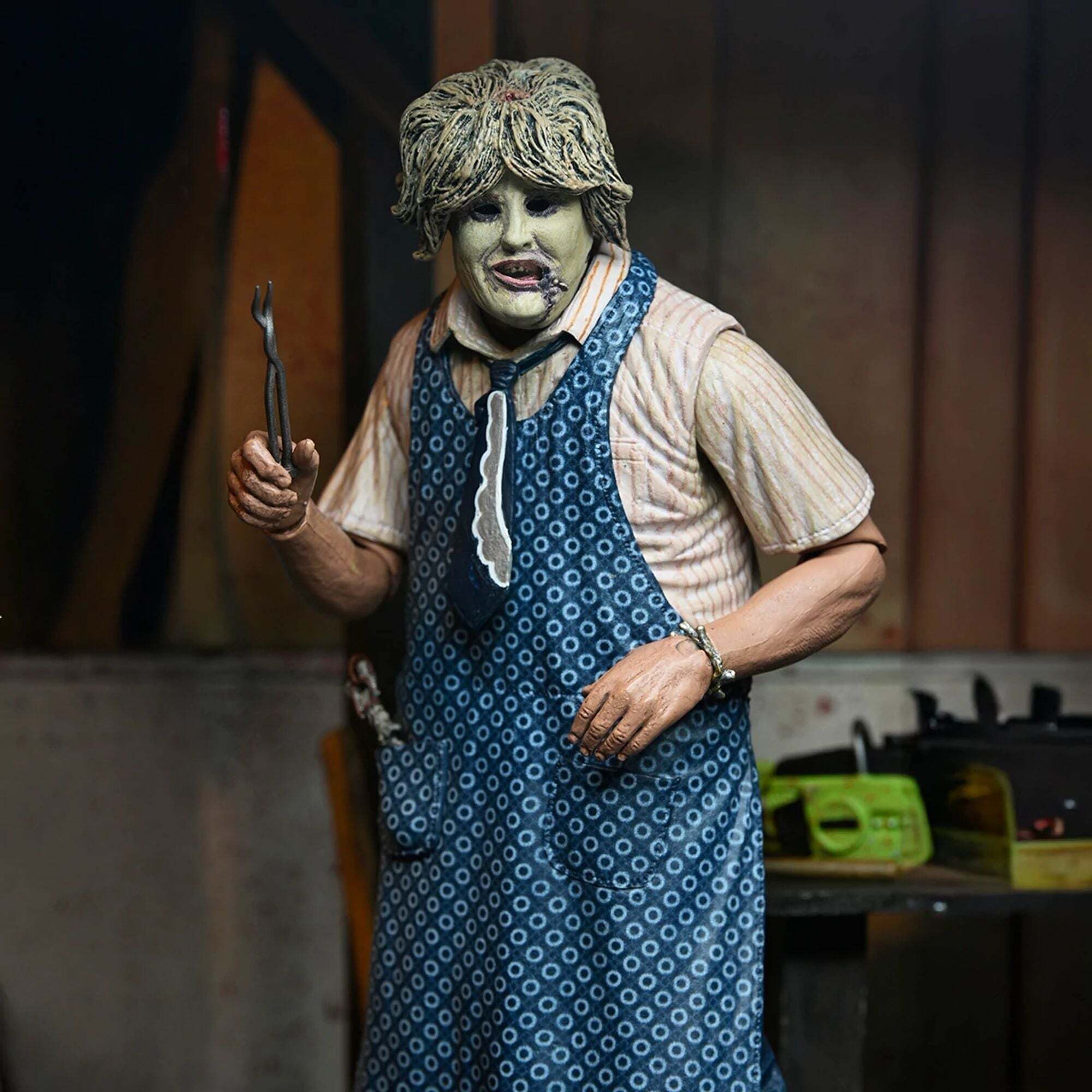 ""Pour les 50 ans de Massacre à la Tronçonneuse, NECA remet Leatherface à l’honneur avec une toute nouvelle version Ultimate, entièrement retravaillée ! Le film culte de 1974 signé Tobe Hooper a bouleversé le cinéma d’horreur, et voici l’occasion parfaite d’en avoir un morceau dans votre collection. Cette figurine ultra-articulée de 18 cm propose deux styles grâce à ses tabliers interchangeables, ainsi que trois têtes et plusieurs mains alternatives. Côté accessoires, elle est équipée de tout l’arsenal iconique du boucher texan : tronçonneuse ensanglantée, marteaux, pince, couteau, couperet, crochet de boucher, cuillère et même un bracelet. Le tout est présenté dans un emballage collector avec ouverture frontale. Un indispensable pour les fans de Leatherface… À ajouter à votre collection sans tarder !"