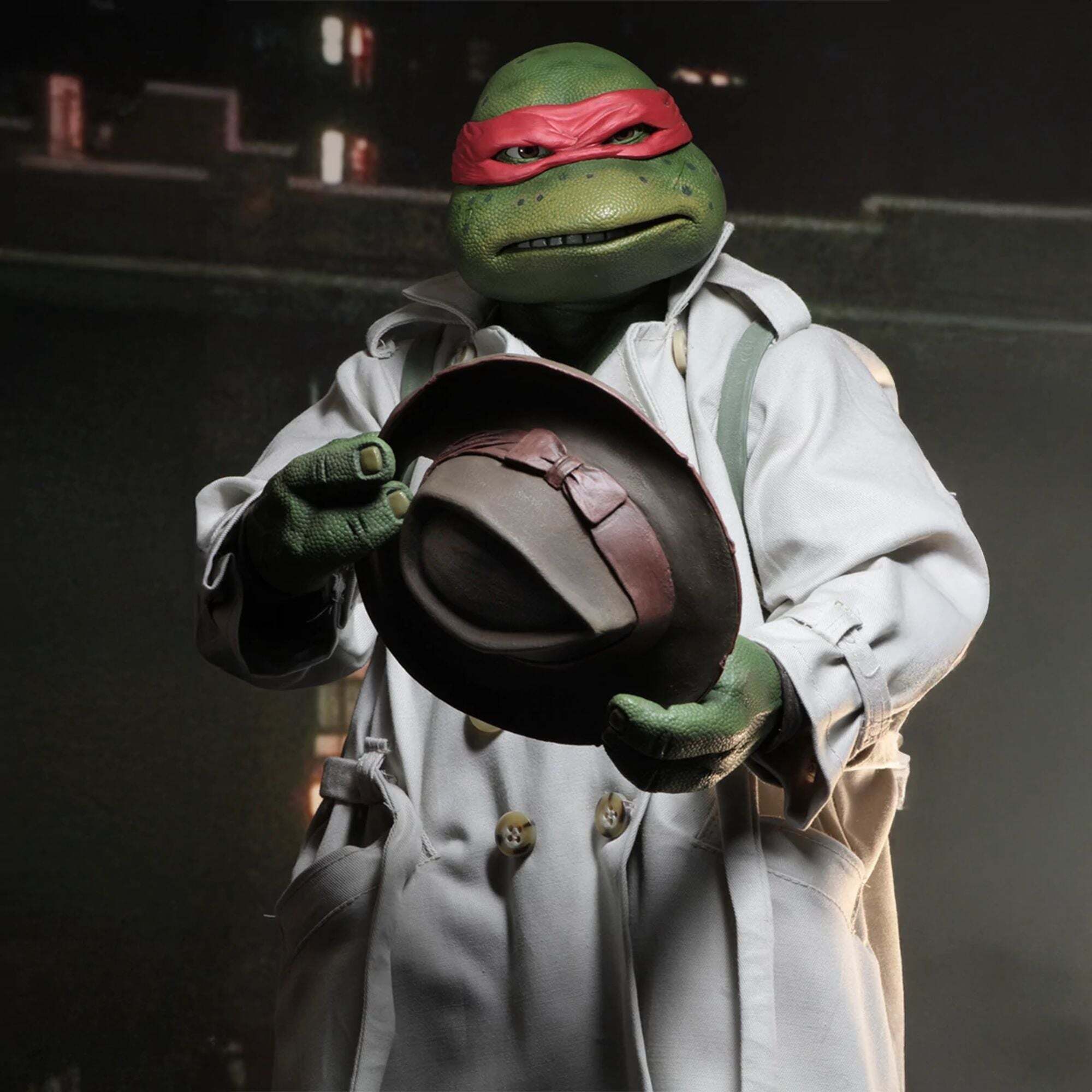 Tirée du film Les Tortues Ninja de 1990 ! Après avoir traversé une piscine de déchets radioactifs, ces tortues se sont transformées en le quatuor de justiciers le plus redoutable de New York ! Cette figurine articulée NECA à l'échelle 1/4 représente Raphael déguisé, celui qu'il utilise pour se déplacer incognito dans la ville. Hauteur: 45 cm