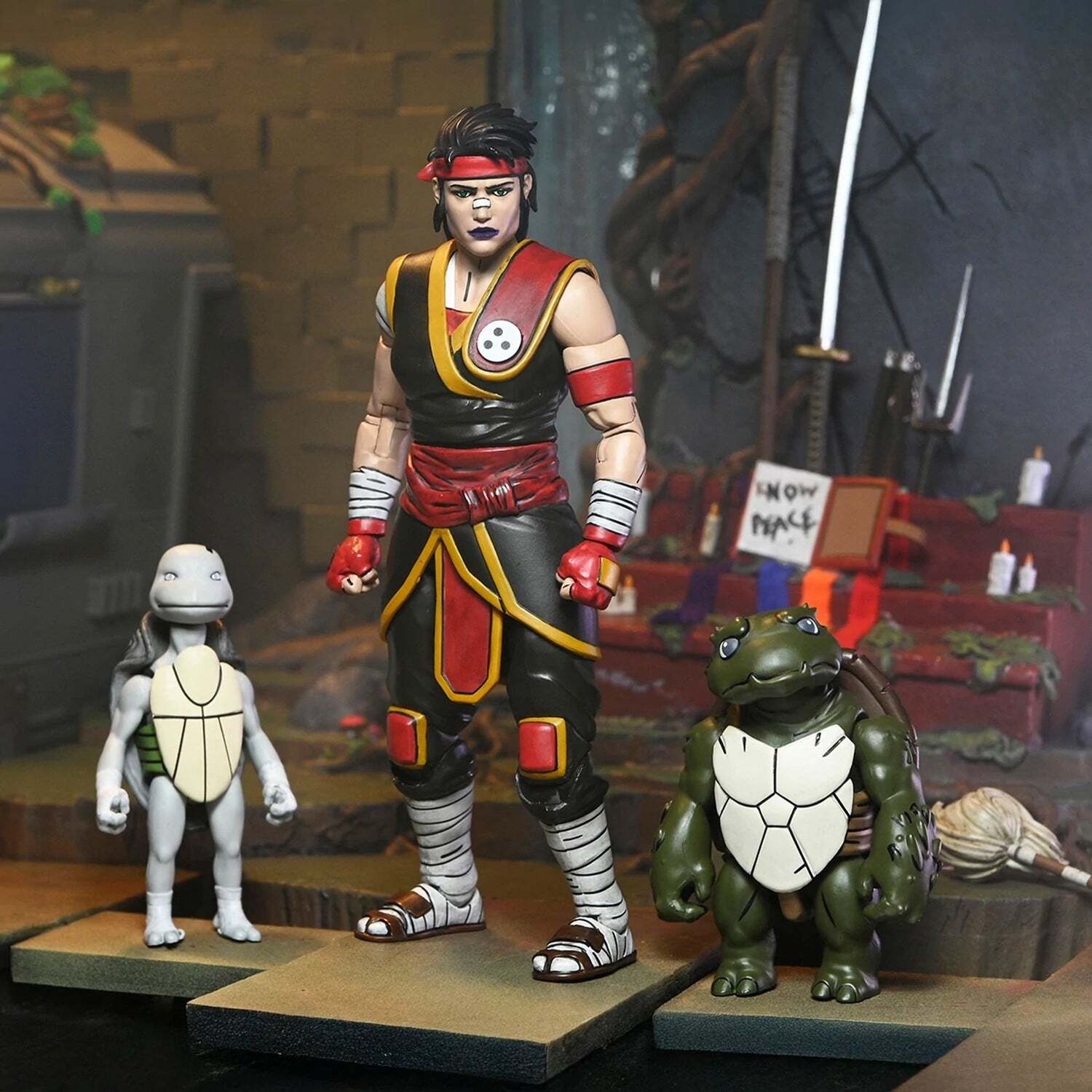 Tirée de la série de comics Les Tortues Ninja, voici « Le Dernier Ronin : Les Années Perdues » ! L'histoire de la première mission du Dernier Ronin se poursuit, révélant de nouveaux secrets du passé des Tortues. Vêtue de sa tenue de sensei, Casey Marie (version Ultimate) est accompagnée de l'adorable bébé Odyn et du malicieux bébé Uno. Ces figurines articulées NECA de 18 cm (7 pouces) sont très détaillées et présentent des sculptures inédites. Hauteur: 18 cm