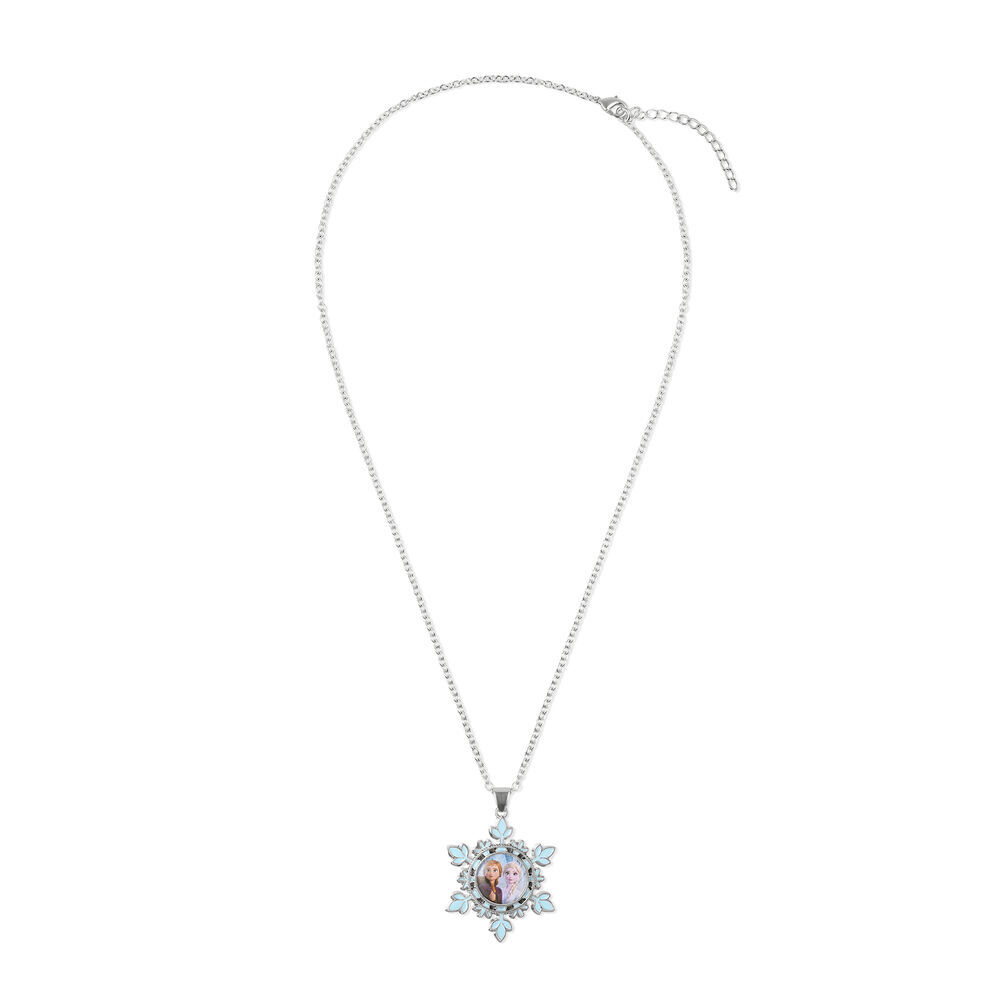 Le collier plaqué argent sterling est complété par le design du pendentif des adorables Elsa et Anna dans le design emblématique du flocon de neige.